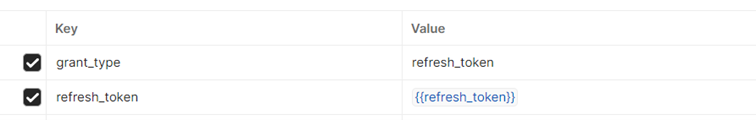 Set the “Refresh token” you obtained from your previous call into your body request: